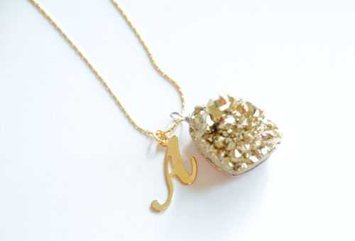 Initial Gold Druzy short Necklace